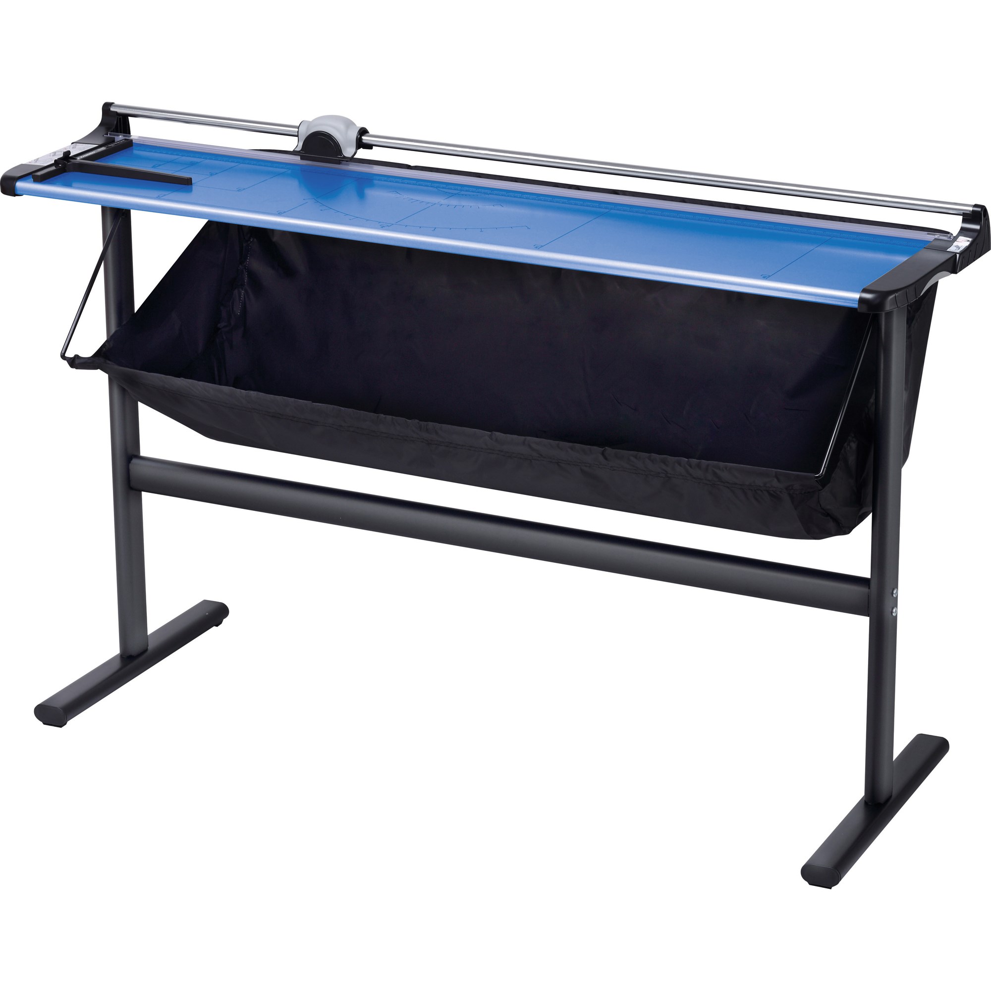 Strong, sturdy, standup, metal cutting base with tray to catch cuttings Ergonomic replaceable cutting head with self-sharpening rotary blade Transparent hand guard clamps on to paper while cutting Adjustable paper guide, Scale marking with DIN paper sizes Includes sturdy steel stand (assembly required) Cuts up to 7 sheets (80gsm paper)