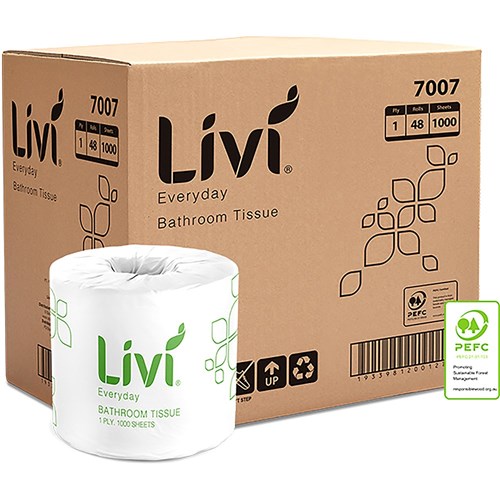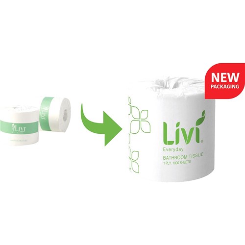 • The Livi Everyday is a 1ply, 1000-sheet conventional toilet paper roll, individually wrapped to maintain presentation and optimal hygiene standards