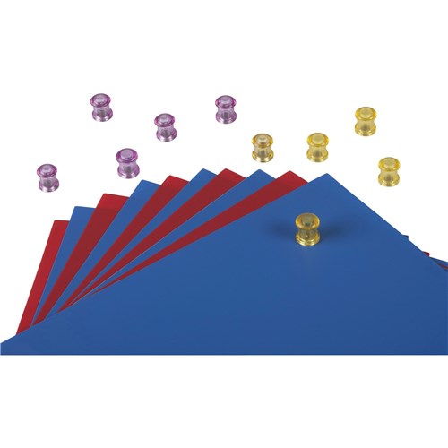 Extra strong neodymium magnets. Strong enough to hold up to 10 sheets of A4 80gsm paper to a regular whiteboard or filing cabinet. Available in 3 styles for colour coding.