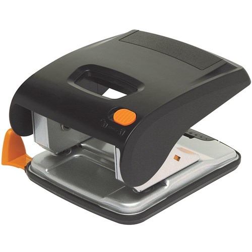 Marbig 2 Hole Punch Low Force 30 Sheet Capacity Black And Orange