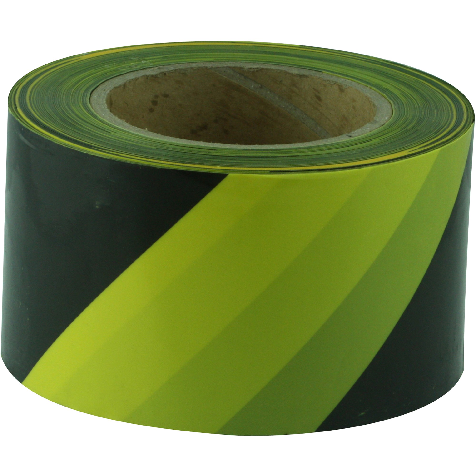 Non-adhesive barricade tape. 75mm wide by 100 metres long. Heavy duty polyethylene. Intended to create a temporary visual barrier.
