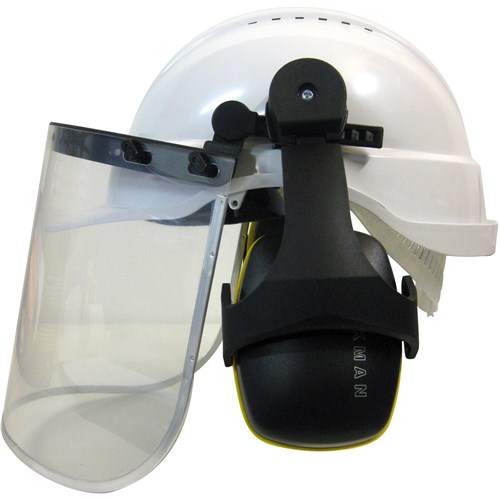 Complete helmet, clear visor and earmuffs. Lightweight, easy to assemble. Visor fitted with EasyFit clips for quick and easy visor replacement. Includes Class 5 HHE672 Helmet Earmuff. Expiry: 3 years from the date of first use.