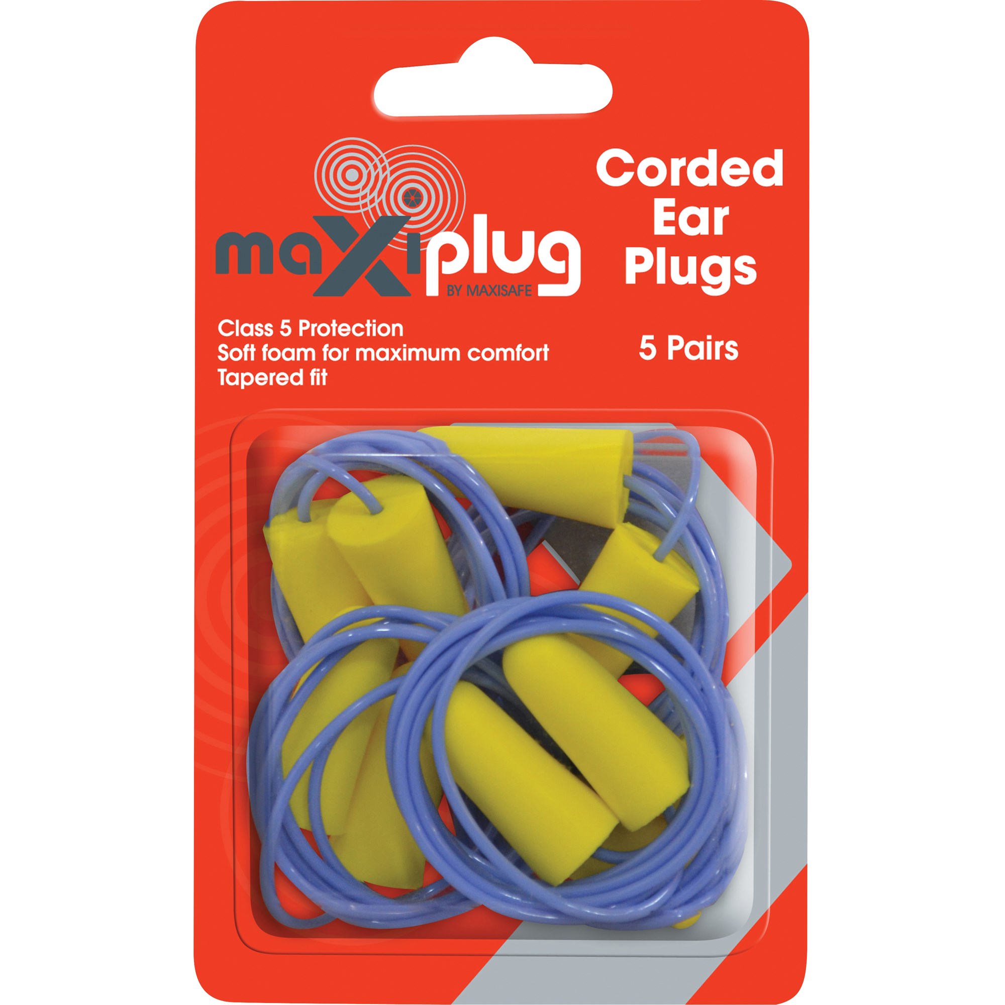 Maxisafe MaxiPlug Ear Plugs Disposable Corded 26dB Yellow And Blue Pack Of 5 Pairs