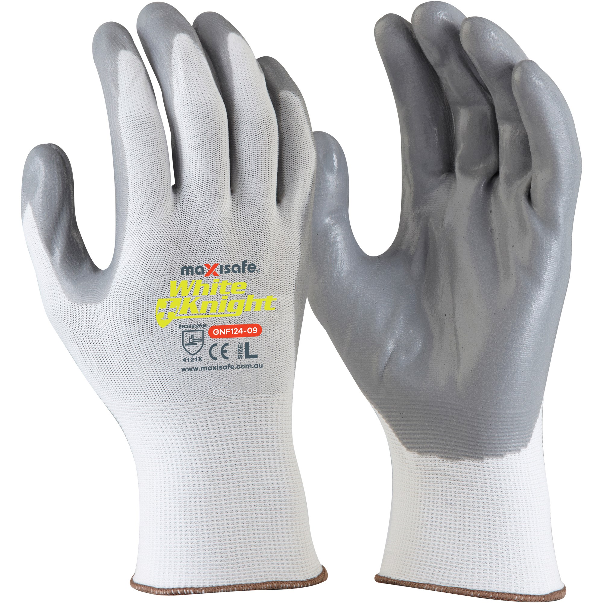 Maxisafe White Knight Nitrile Palm Gloves White And Grey 2XL