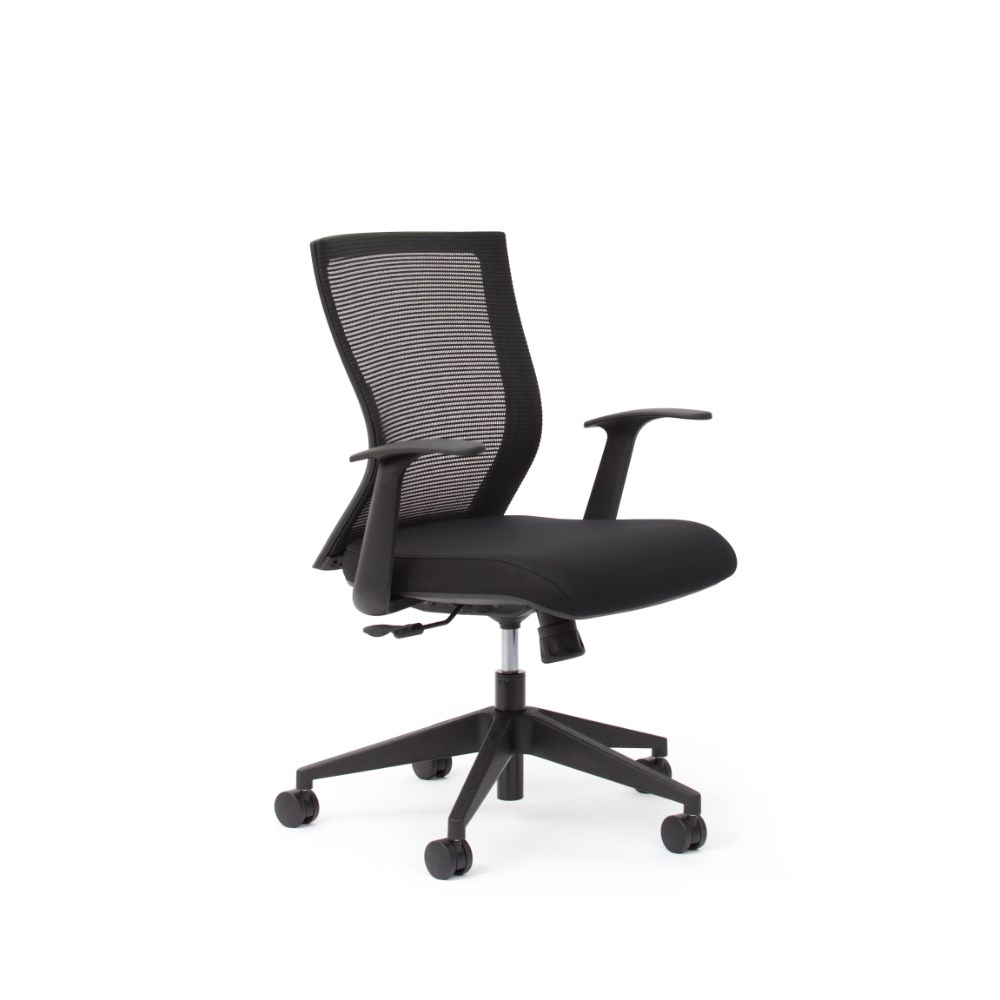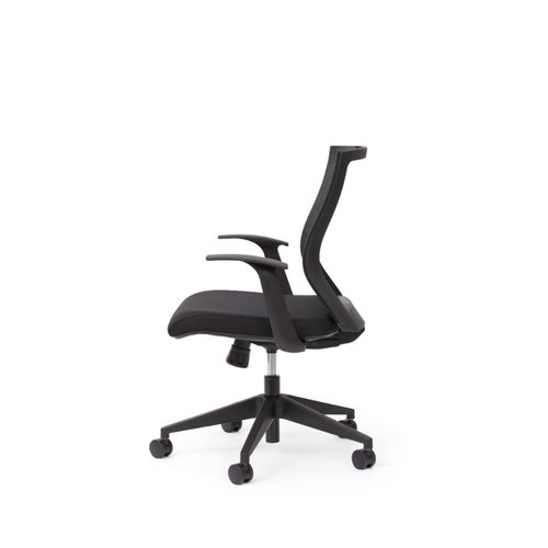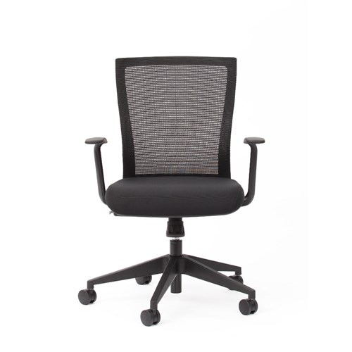 Chair Capacity: 140kg. Composition: Upholstered seat, mesh back, nylon base. Seat Width: 505mm. Seat Depth: 510mm. Seat Height: 430-530mm. Overall Height: 945-1045mm. Armrest Height: 605-785mm. Indicative Seating Time: 6+ hours. Stylish black nylon star base. Heavy duty 60mm unhooded castors. Mesh backrest. Suitable for task, conference and boardroom seating. 10 Year Manufacturer's Warranty. Delivery, installation and assembly charges may apply to furniture. Please enquire to confirm.