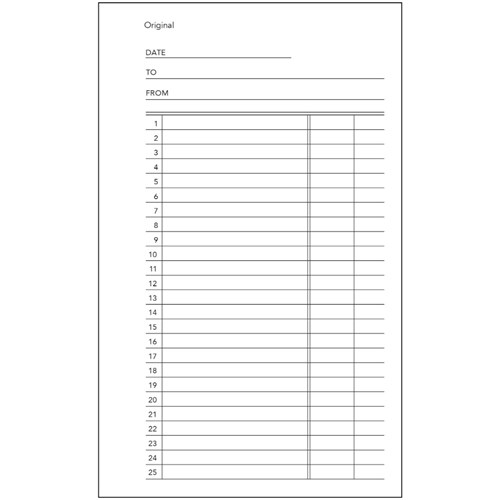 Provides a quick and effective way of managing any business transaction. 205 x 125mm. Sequentially numbered for filing and accounting purposes. Ideal for use in restaurants and cafes. FSC certified.