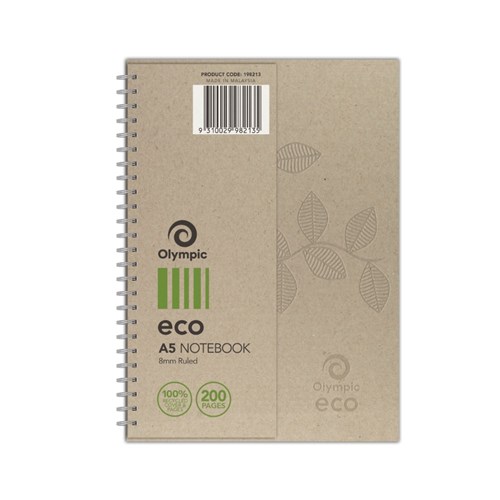 Olympic ECO Wiro Notebook A5 Ruled 8mm Spiral Side Bound 200 Page