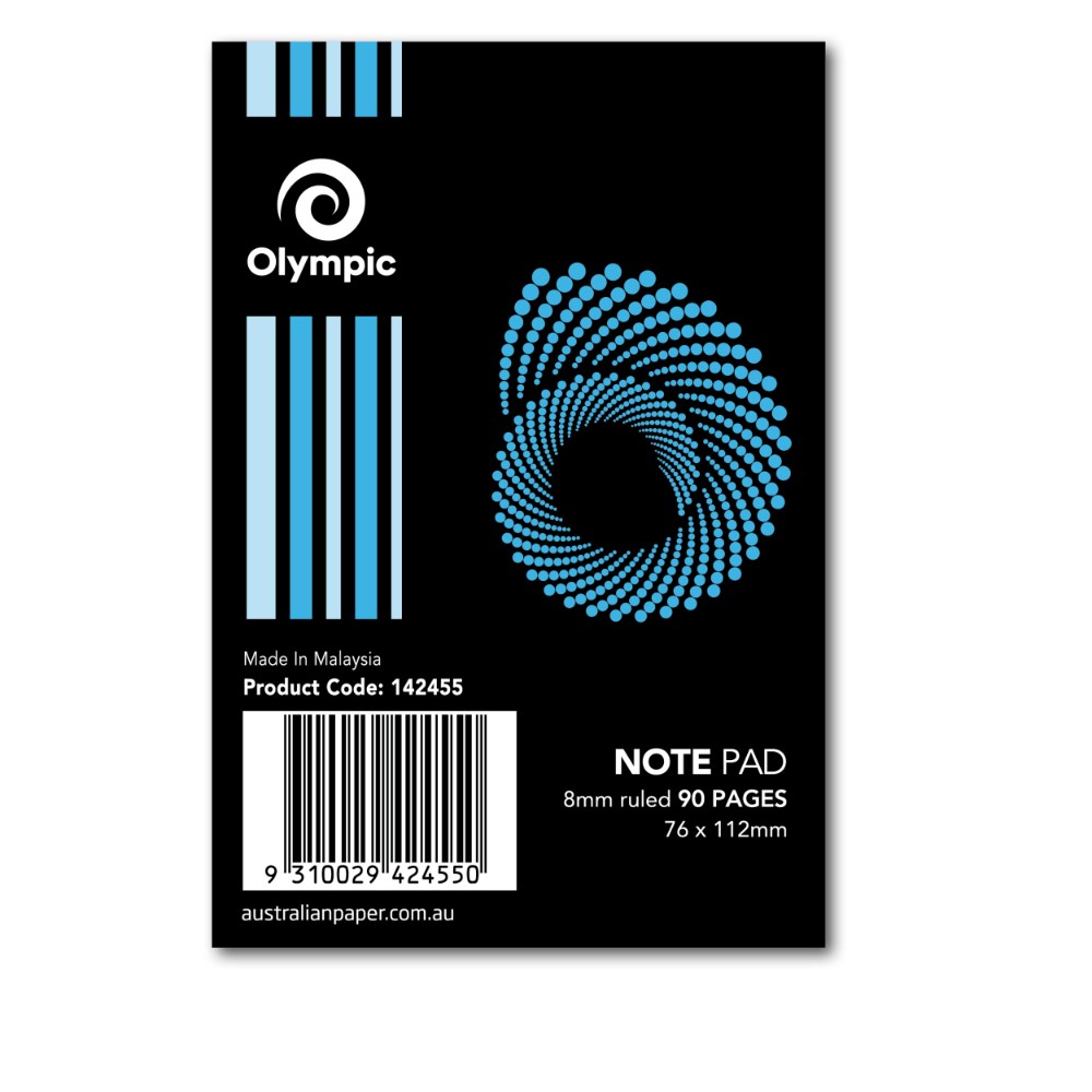 Olympic SP60 Spiral Note Pad 76 x 112mm 8mm Ruled Top Bound 90 Page