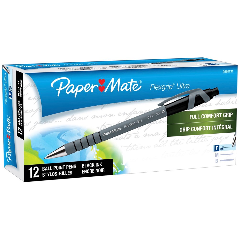 Paper Mate FlexGrip Ultra Ballpoint Pen Retractable Fine 0.8mm Black