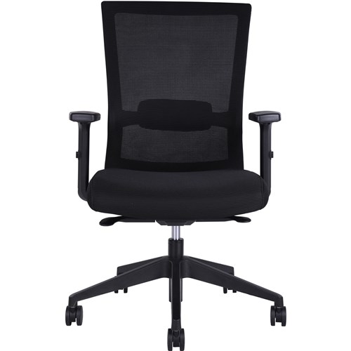 Lumbar support with adjustable waist rest and weight balance synchronised tilt mechanism. 4 lockable positions, seat and arm height adjustable. Composition: Nylon Base. Mesh Back. Chair Capacity: 110kg. Seat Width: 645mm. Seat Depth: 565mm. Height: 995-1110mm. 3 Year Manufacturer's Warranty. Delivery, installation and assembly charges may apply to furniture. Please enquire to confirm.