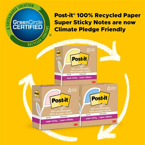 100% recycled paper and packaging. 2 x sticking power. Stick and restick on doors, walls, windows, computer screens and more. Take your notes, ideas and reminders with you. 45 sheets per pad.
