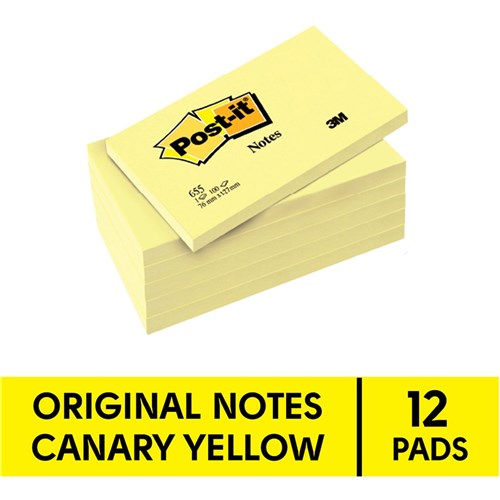 Post-It 655 Notes Original 76x127mm Yellow Pad 100 Sheets