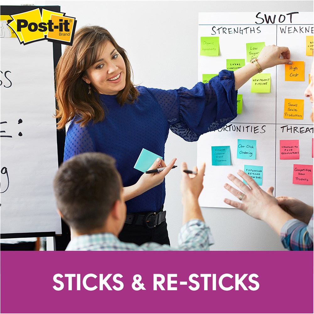 • Super Sticky Post-it® adhesive ensures that notes stick practically anywhere such as computer monitors, filing cabinets & furniture, and remain as easily removable as original Post-it® Notes.