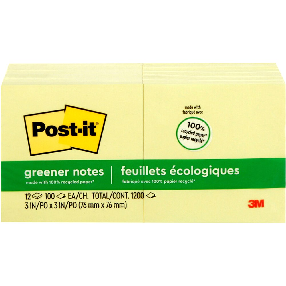 Post-It 654R-24CP-CY Notes 76x76mm Greener Recycled Cabinet Pack Yellow Pack of 24