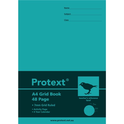 Protext A4 7mm Ruled Grid Book 48 Page Bird