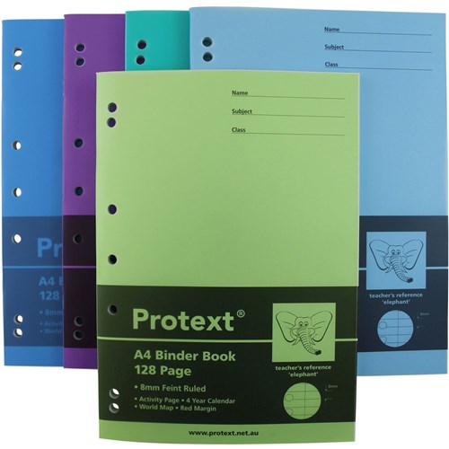 Protext long lasting PP cover. Bright, mixed colours. 4 year calendar, activity page, maths tables & red margin. Quality white bond paper.
