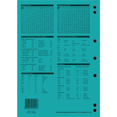 • 4 year calendar, activity page, maths tables & red margin.