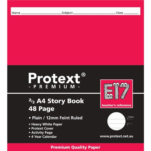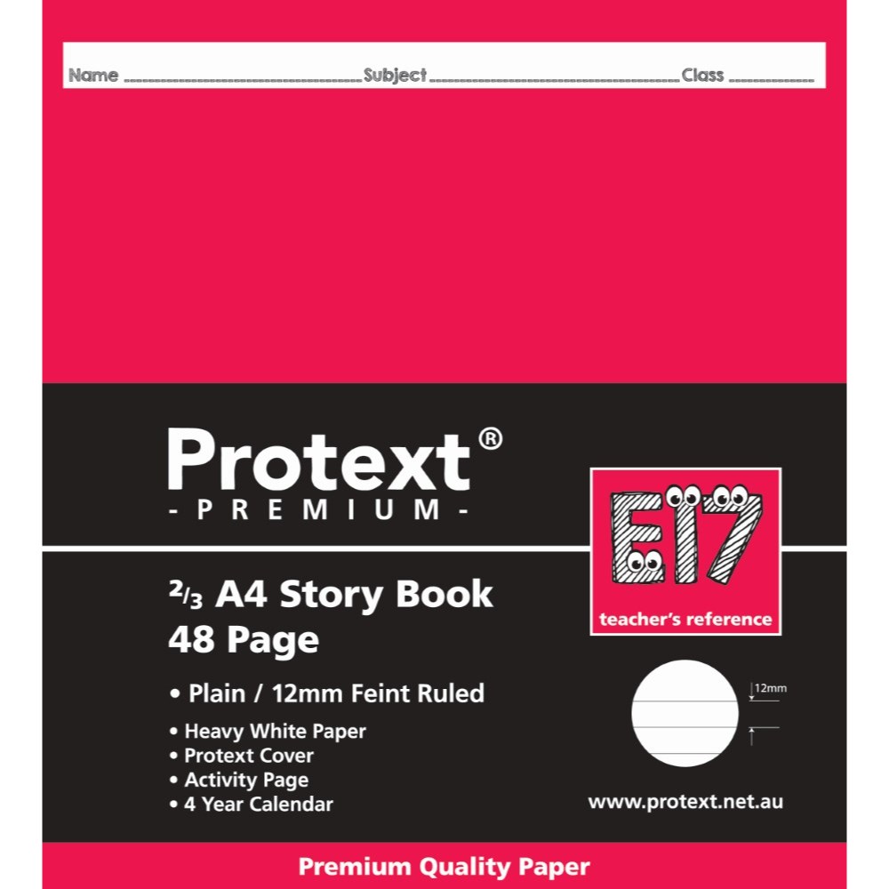 • Protext Premium Story Books combine Premium 70gsm Bond paper, crisp rulings and a clear polyproylene cover - no need to cover your books! Story books have part ruled/part plain pages allowing stories to be written and illustrated