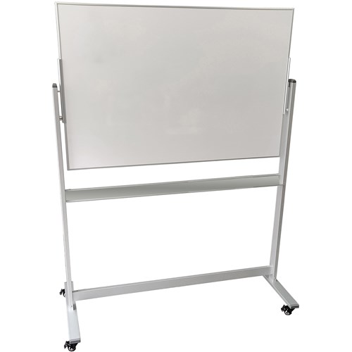 Double sided magnetic whiteboard pivots 360 degrees. Durable stand provides excellent stability with 4 lockable castors. Commercial grade premium whiteboard surface erases cleanly. New board locking mechanism for a sturdy finish. Accessory tray integrated into frame. Best suited for moderate use in spaces with regular traffic. 10 Year Manufacturer's Surface Warranty.