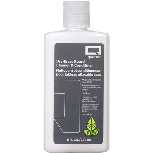 Whiteboard cleaner and conditioner pH balanced formula is made using plant-based ingredients. Cleans board surface and removes dry-erase ink stains. Conditioner has a restorative quality of to help extend the overall lifespan of the whiteboard. Suitable for most board types including porcelain and melamine boards. Clean board with eraser first, then apply to board surface and wipe with a soft cloth.