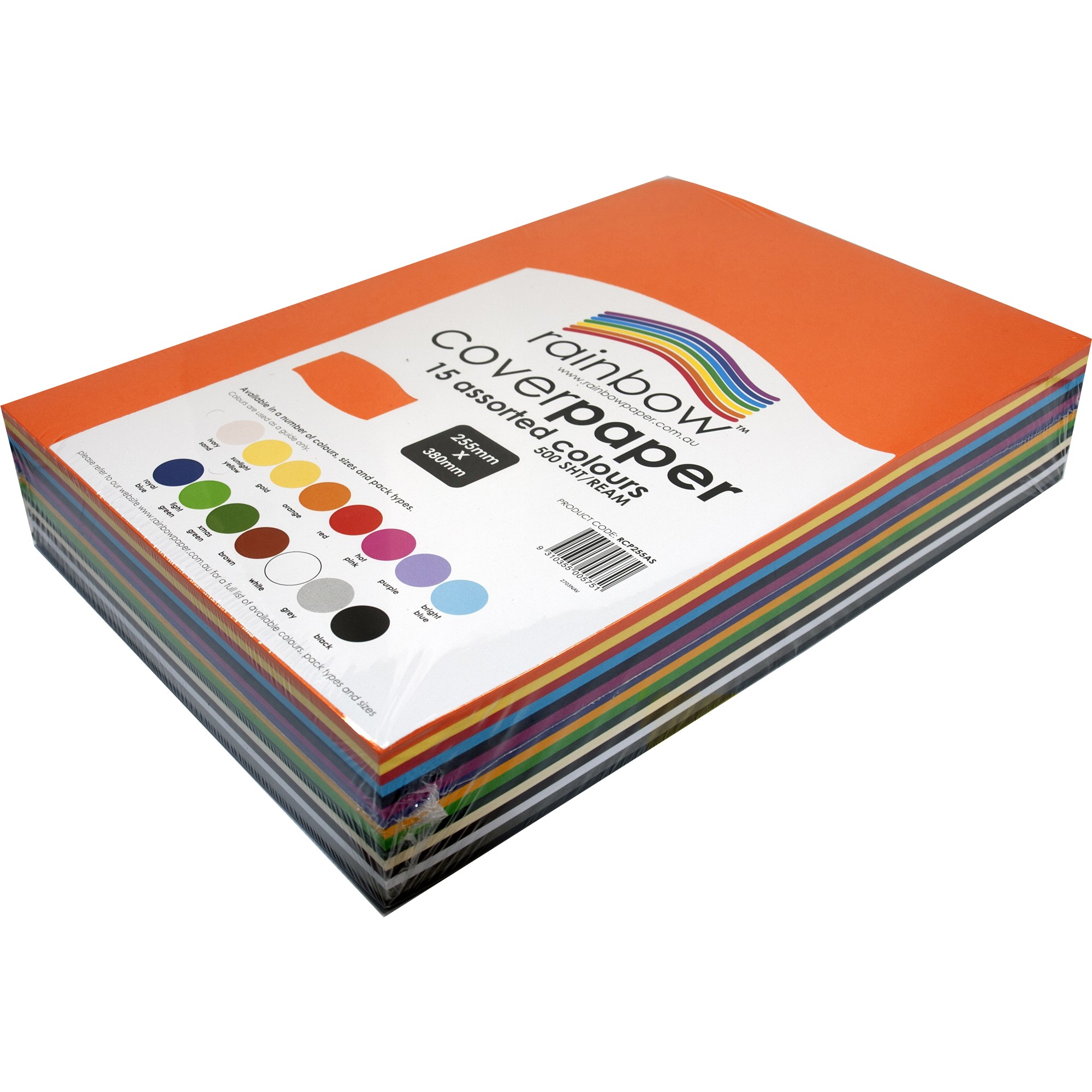 Rainbow Cover Paper 255x380mm 125gsm Assorted 500 Sheets