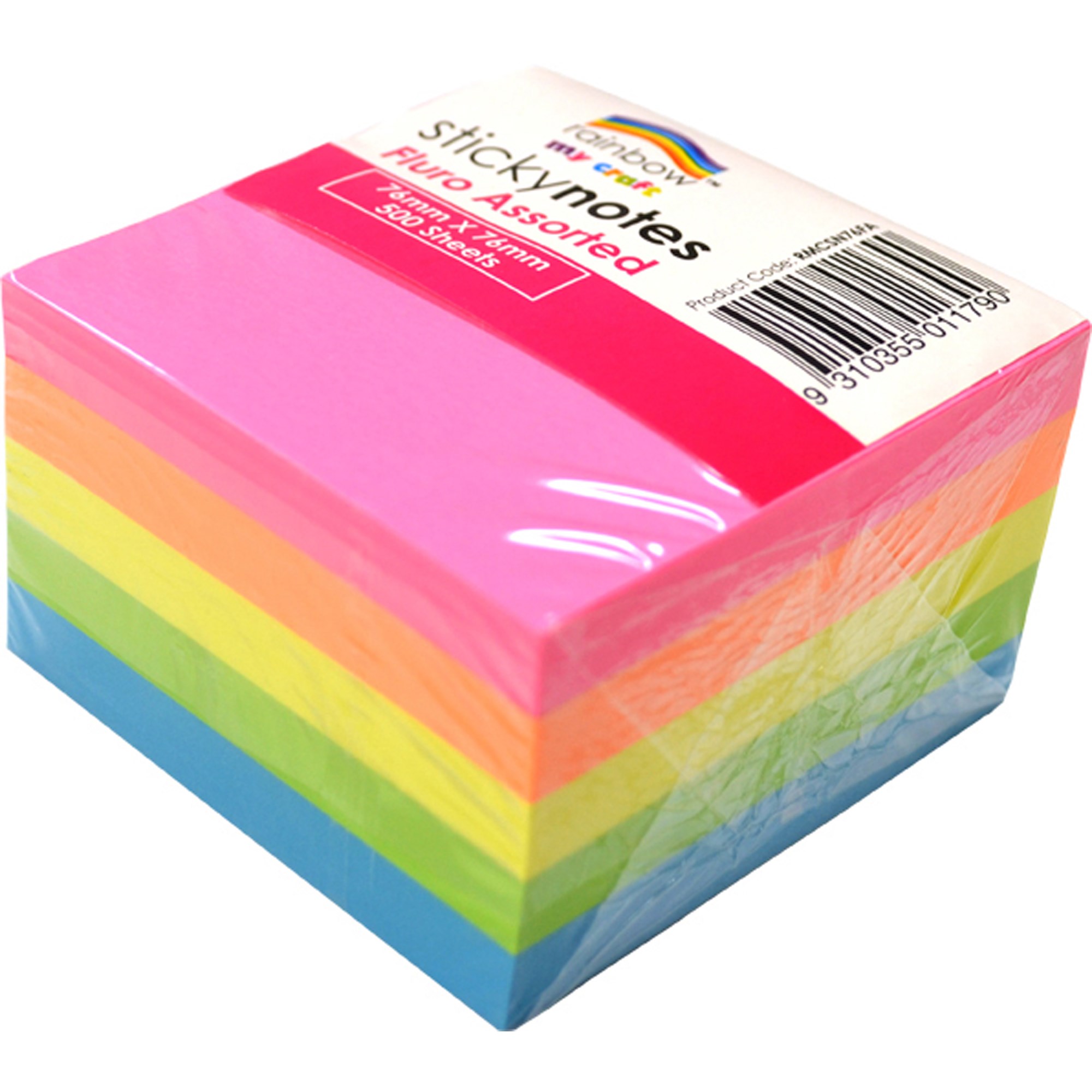 Rainbow My Craft Sticky Notes 76 x 76mm Fluro Assorted 500 Sheets