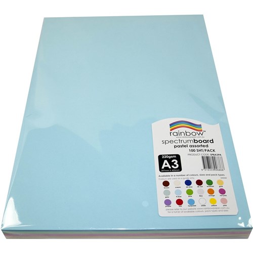 Rainbow Spectrum Board A3 220 gsm Pastel Assorted 100 Sheets