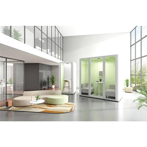 Speech level reduction of 30DB. Air replacement: every 1.8 minutes (total air flow: 2680L/min). Fitted with 1 x LED light (4w 400k). Comes with 8 x ventilation fans, controlled by a door triggered sensor. Fitted with heavy duty castors for easy movement for relocation. Overall Dimension: 2200W x 1500D x 2200mmH. Internal Dimension: 2100W x 1380D x 2080mmH. Doorway Width: 840mm. Sofa Overall Size: 1370W x 580D x 680mmH each. 2 Sofas per Pod. Sofa seat depth: 450, Sofa seat height: 390mmH. Back rest height: 290mm. Table Dimension: 1000W x 500D x 640mmH with rectangular flat plate base underframe. Custom order colours and sizes are also available with an 8-10 weeks lead time. 5 Years Manufacturer's Warranty. Delivery, installation and assembly charges may apply to furniture. Please enquire to confirm.