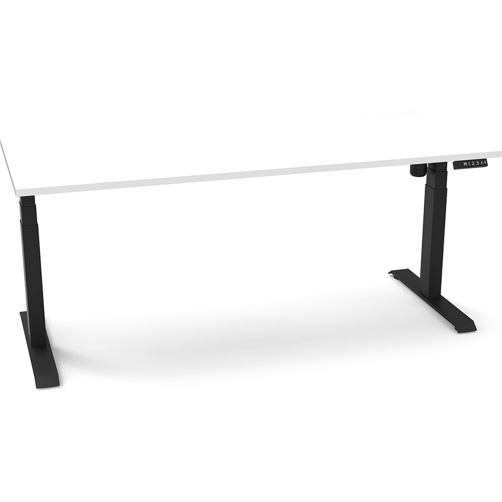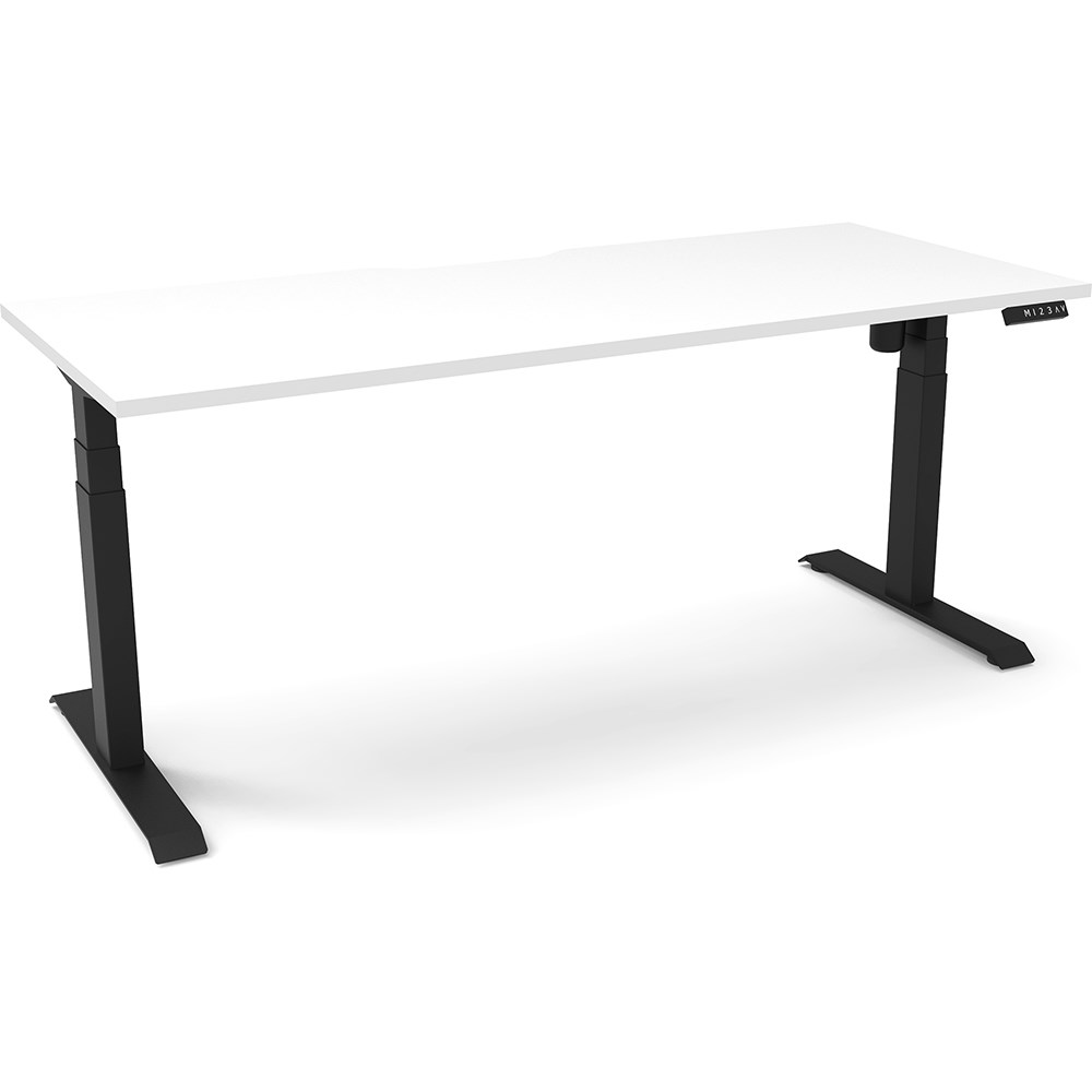 White top with Black frame. Unit Dimension: 1800mm W x 750mm D x 620-1270mm H. E0 rated top. Powdercoat base. Digital control panel with 3 pre-set positions, LED display panel, keypad safety lock & reminder alarm setting. Anti-collision technology, noise emission of less than 50DB. Lifting capacity of 80kg with a max speed of 25mm per second. 700mm wide foot size with adjustable leveling feet. 10 Year Manufacturer's Warranty. Delivery, installation and assembly charges may apply to furniture. Please enquire to confirm.