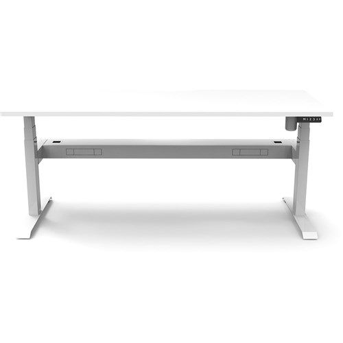 White top with White frame. Unit Dimension: 1200mm W x 750mm D x 620-1270mm H. Comes with cable tray for cable management. E0 rated top. Powdercoat base. Digital control panel with 3 pre-set positions, LED display panel, keypad safety lock & reminder alarm setting. Anti-collision technology, noise emission of less than 50DB. Lifting capacity of 80kg with a max speed of 25mm per second. 700mm wide foot size with adjustable leveling feet. 10 Year Manufacturer's Warranty. Delivery, installation and assembly charges may apply to furniture. Please enquire to confirm.