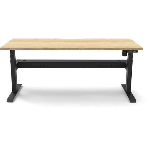 Natural Oak top with Black frame. Unit Dimension: 1800mm W x 750mm D x 620-1270mm H. Comes with cable tray for cable management. E0 rated top. Powdercoat base. Digital control panel with 3 pre-set positions, LED display panel, keypad safety lock & reminder alarm setting. Anti-collision technology, noise emission of less than 50DB. Lifting capacity of 80kg with a max speed of 25mm per second. 700mm wide foot size with adjustable leveling feet. 10 Year Manufacturer's Warranty. Delivery, installation and assembly charges may apply to furniture. Please enquire to confirm.