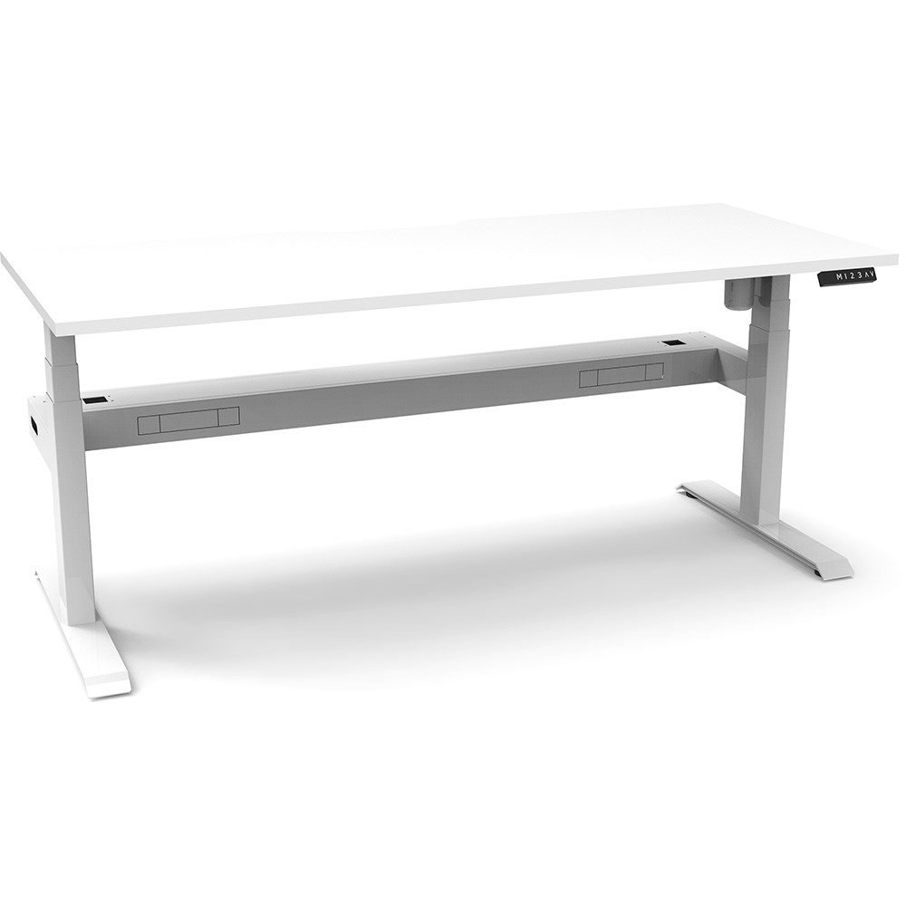 White top with White frame. Unit Dimension: 1800mm W x 750mm D x 620-1270mm H. Comes with cable tray for cable management. E0 rated top. Powdercoat base. Digital control panel with 3 pre-set positions, LED display panel, keypad safety lock & reminder alarm setting. Anti-collision technology, noise emission of less than 50DB. Lifting capacity of 80kg with a max speed of 25mm per second. 700mm wide foot size with adjustable leveling feet. 10 Year Manufacturer's Warranty. Delivery, installation and assembly charges may apply to furniture. Please enquire to confirm.