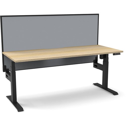 Natural Oak top with Black frame. Unit Dimension: 1500mm W x 750mm D x 1330mm H. 620-1270mm height range for desk. E0 rated top. Powdercoat base. Digital control panel with 3 pre-set positions, LED display panel, keypad safety lock & reminder alarm setting. Anti-collision technology, noise emission of less than 50DB. Lifting capacity of 80kg with a max speed of 25mm per second. 700mm wide foot size with adjustable leveling feet. Comes with 30mm thick privacy screen. 10 Year Manufacturer's Warranty. Delivery, installation and assembly charges may apply to furniture. Please enquire to confirm.