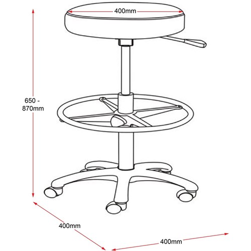 Counter height stool, ideal for labs and short periods of sitting at counter height. Upholstered in easy to clean black PU. Unit Dimensions: 400W x 400D x 650-870mmH. 3 Year Manufacturer's Warranty. Delivery, installation and assembly charges may apply to furniture. Please enquire to confirm.