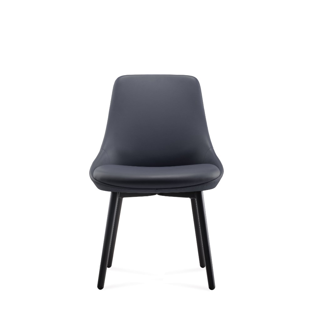 Eros breakout room or dining chair. Robust steel 4 leg frame finished in black powder coat French Navy PU leather seat. Dimensions: 530W x 580D x 830H. GreenGuard Gold certified. 5 Year Manufacturer's Warranty. Delivery, installation and assembly charges may apply to furniture. Please enquire to confirm.