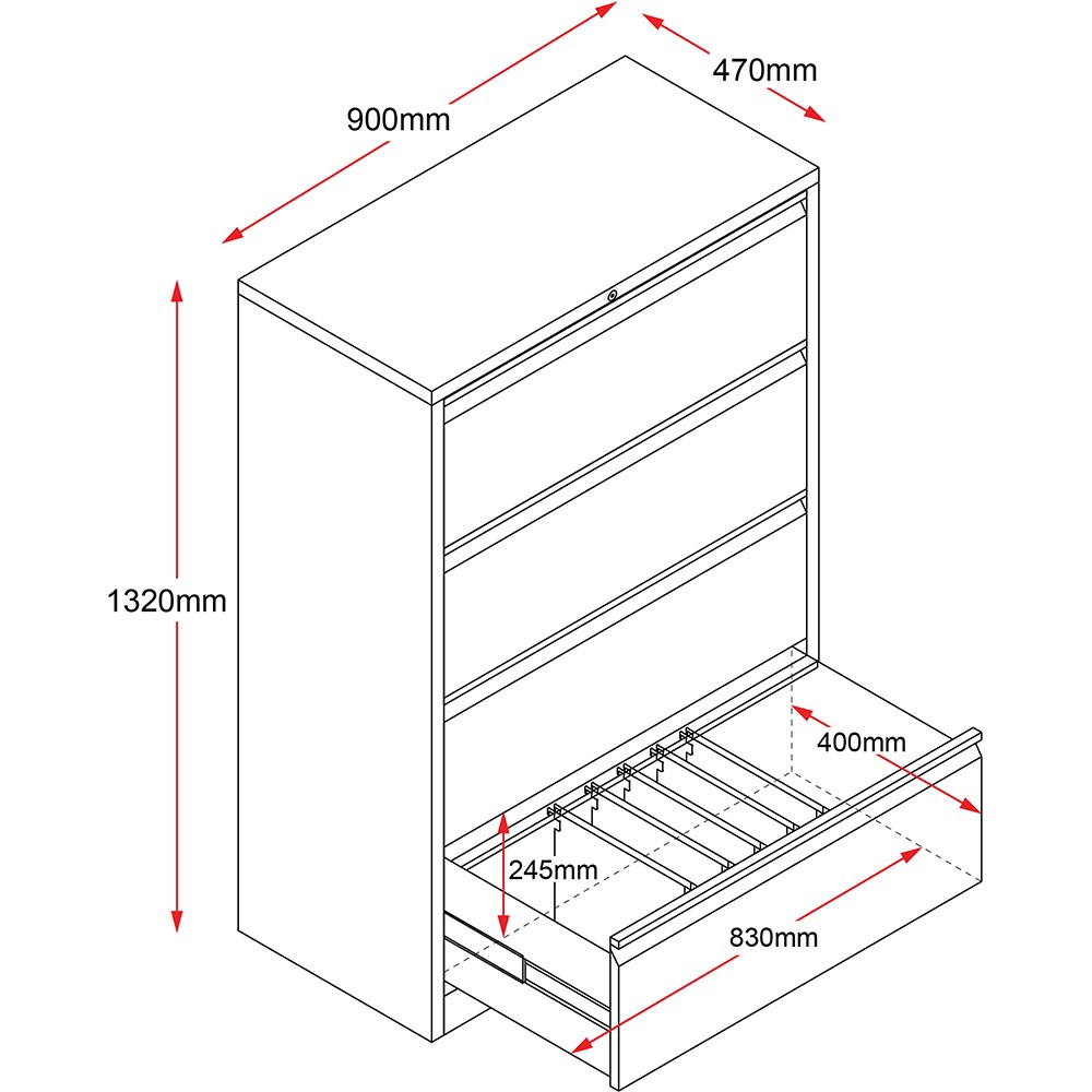 • Rapidline Go Lateral Filing Cabinet 4 Drawer 900W x 473D x 1321mmH Black