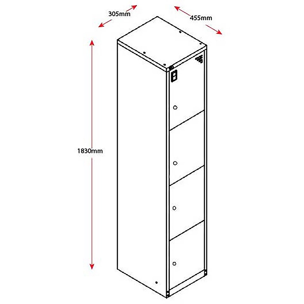 Riveted construction for extra strength. Full length stiffeners fitted to every door for additional security. Ventilation on door. The 4 door locker maximises valuable space. 10 Year Manufacturer's Warranty. Delivery, installation and assembly charges may apply to furniture. Please enquire to confirm.