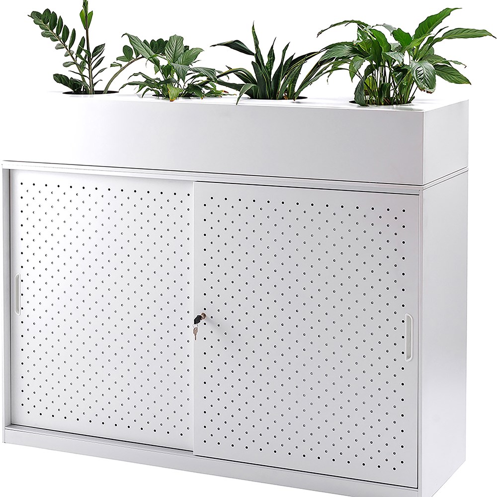 Planter box to suit GO perforated sliding door cupboard. 4 x plant pot holes. 0.7mm steel gauge used throughout. Holds a 200mm pot. Plants and pots not included. 10 Year Manufacturer's Warranty. Delivery, installation and assembly charges may apply to furniture. Please enquire to confirm.