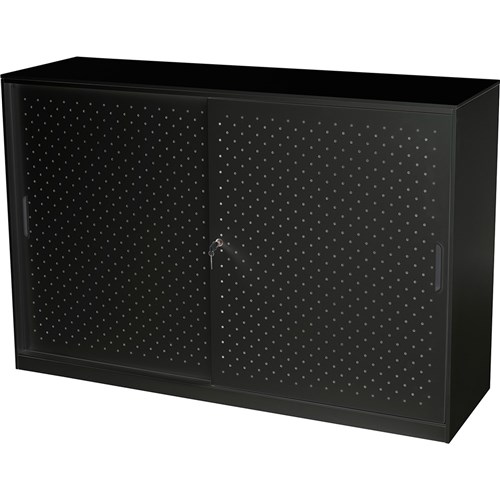 GO perforated sliding door cupboard with 2 doors. Includes 2 x adjustable shelves - 1 on each side. Perforated door feature with internal acoustic panel for sound absorption. Adjustable leveling feet. Soft closing track system. Lockable doors - comes with 2 keys. 10 Year Manufacturer's Warranty. Delivery, installation and assembly charges may apply to furniture. Please enquire to confirm.