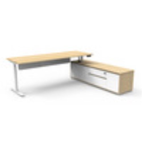 Natural Oak top and White Satin frame. Height adjustable desk with modesty panel and right hand side cabinet. Desk Dimensions: 2100W x 750D x 620-1270mmH. Side Cabinet Dimensions: 1800W x 500D x 520mmH. Overall Footprint: 2270W x 1936mmD. Offers a spacious configuration with an eye-catching finish. A height-adjustable desk that incorporates dual motors for smooth and quiet operation, allowing you to effortlessly adjust to your preferred working position. Equipped with 3 pre-set positions and anti-collision technology, it ensures safe and reliable use. The integrated side cabinet provides ample storage with drawers and cupboards, enhancing workspace organisation and keeping your essentials within easy reach. Powder coated legs. 2 x pull out drawers. 1 x double swing door cupboard. 10 Year Manufacturer's Warranty. Delivery, installation and assembly charges may apply to furniture. Please enquire to confirm.