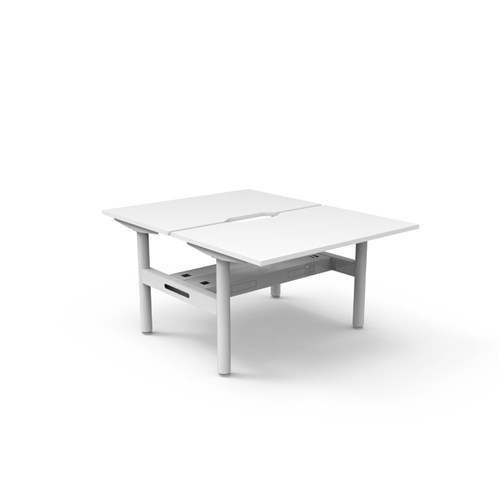 Natural White top White Satin frame. Double sided workstation with cable tray. Overall Dimensions: 1200mW x 1500D x 730mmH. Per User Dimensions: 1200W x 750D x 730mmH. E0 rated 25mm top with rigid edging and 50mm diameter scallop cut out to rear. Powder coated underframe. Adjustable levelling feet. Can be customised with optional accessories like cable management solutions and privacy screens. 10 Year Manufacturer's Warranty. Delivery, installation and assembly charges may apply to furniture. Please enquire to confirm.