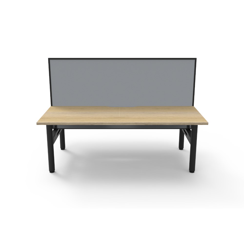 Natural Oak top Black Satin frame. Double sided workstation with screen. Overall Dimensions: 1800W x 1500D x 1330mmH. Desk Per User Dimensions: 1800W x 750D x 730mmH. Height With Screen: 1330mm. E0 rated 25mm top with rigid edging and 50mm diameter scallop cut out to rear. Powder coated underframe. Adjustable levelling feet. Can be customised with optional accessories like cable management solutions and privacy screens. 10 Year Manufacturer's Warranty. Delivery, installation and assembly charges may apply to furniture. Please enquire to confirm.