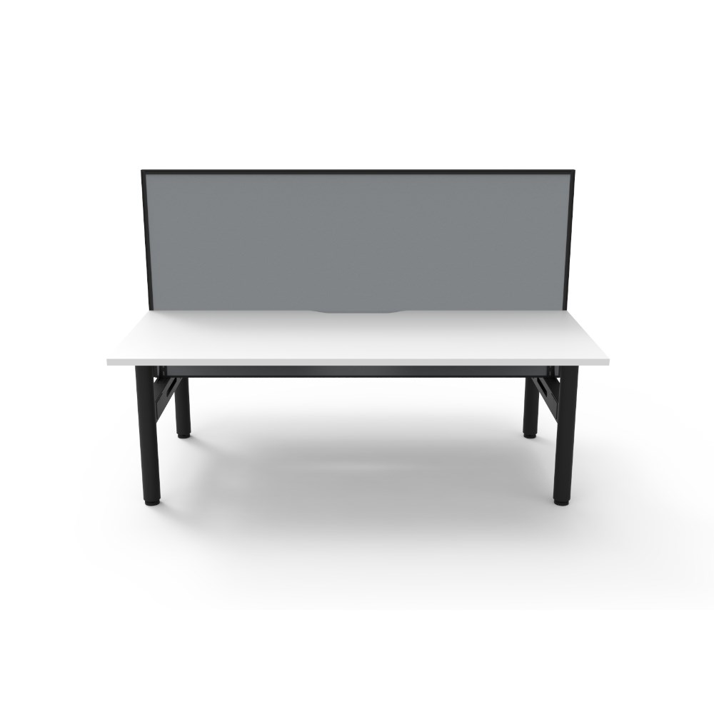 Natural White top Black Satin frame. Double sided workstation with screen. Overall Dimensions: 1800W x 1500D x 1330mmH. Desk Per User Dimensions: 1800W x 750D x 730mmH. Height With Screen: 1330mm. E0 rated 25mm top with rigid edging and 50mm diameter scallop cut out to rear. Powder coated underframe. Adjustable levelling feet. Can be customised with optional accessories like cable management solutions and privacy screens. 10 Year Manufacturer's Warranty. Delivery, installation and assembly charges may apply to furniture. Please enquire to confirm.