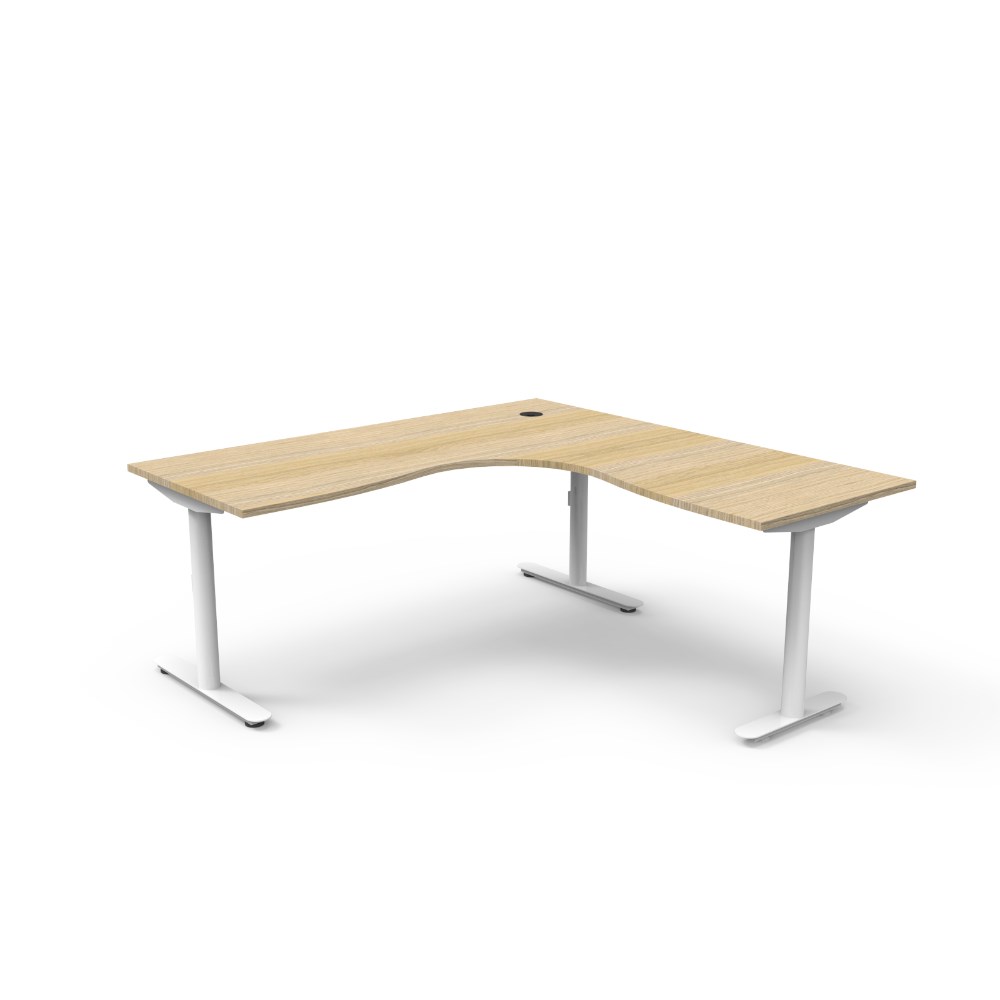 Natural Oak top White Satin frame. Dimensions: 1800W x 1800W x 750D x 730mmH. E0 rated 25mm top with rigid edging and 80mm diameter cable entry with cover. Powder coated underframe. Adjustable levelling feet. 10 Year Manufacturer's Warranty. Delivery, installation and assembly charges may apply to furniture. Please enquire to confirm.