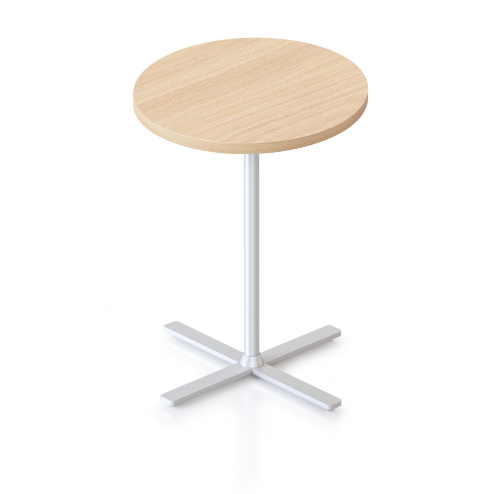 Dimensions: 500mm Diameter x 587mm High. 25mm thick table top. 4 leaf cross base powder coated underframe. Adjustable leveling feet. E0 enviroboard melamine worksurface. Note: Order with 457mmH Kolo table to create a nesting pair. 5 Year Manufacturer's Warranty. Delivery, installation and assembly charges may apply to furniture. Please enquire to confirm.