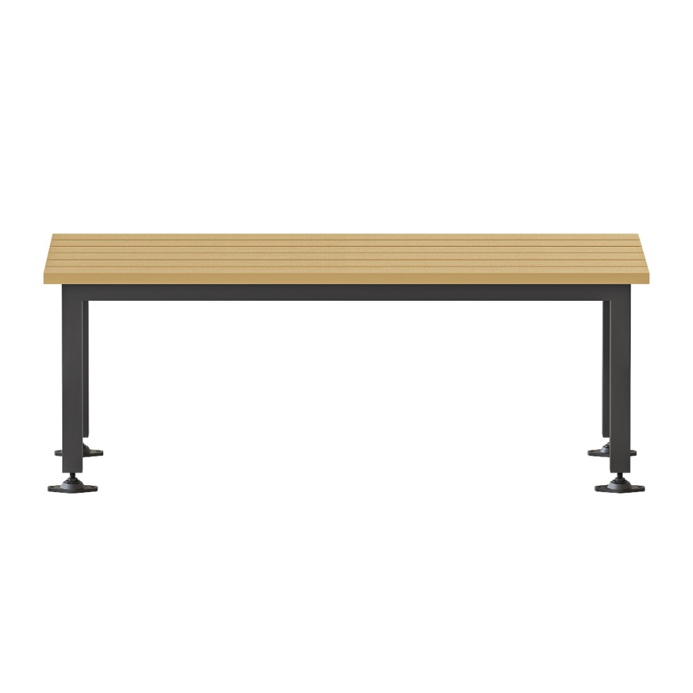A comfortable and practical seating solution. Dimensions: 1200W x 450D x 450mmH. Teak coloured mod wood timber slats. Adjustable leveling feet with bolt down provision. 3 Year Manufacturer's Warranty. Delivery, installation and assembly charges may apply to furniture. Please enquire to confirm.