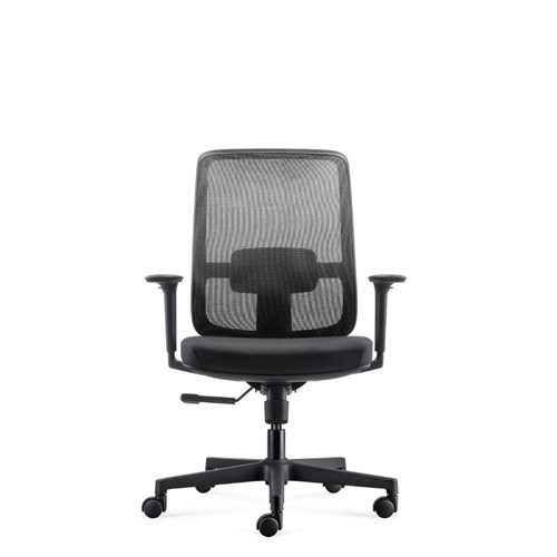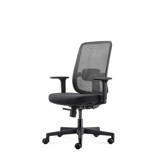 Lotto medium back operator chair. Medium back. Black with grey backed mesh and black fabric seat. Black PP and fiberglass mix frame. Dimensions: 685W x 580D x 950mmH. Synchro mechanism with gas lift, back rest and seat pan tilt. Seat slide and lumbar support. Includes removable adjustable arms. Head rest available sold separately, please see codes 3091552. Black 5 Star base on castors. 135kg weight rating. GreenGuard Gold approved. 5 Year Manufacturer's Warranty. Delivery, installation and assembly charges may apply to furniture. Please enquire to confirm.