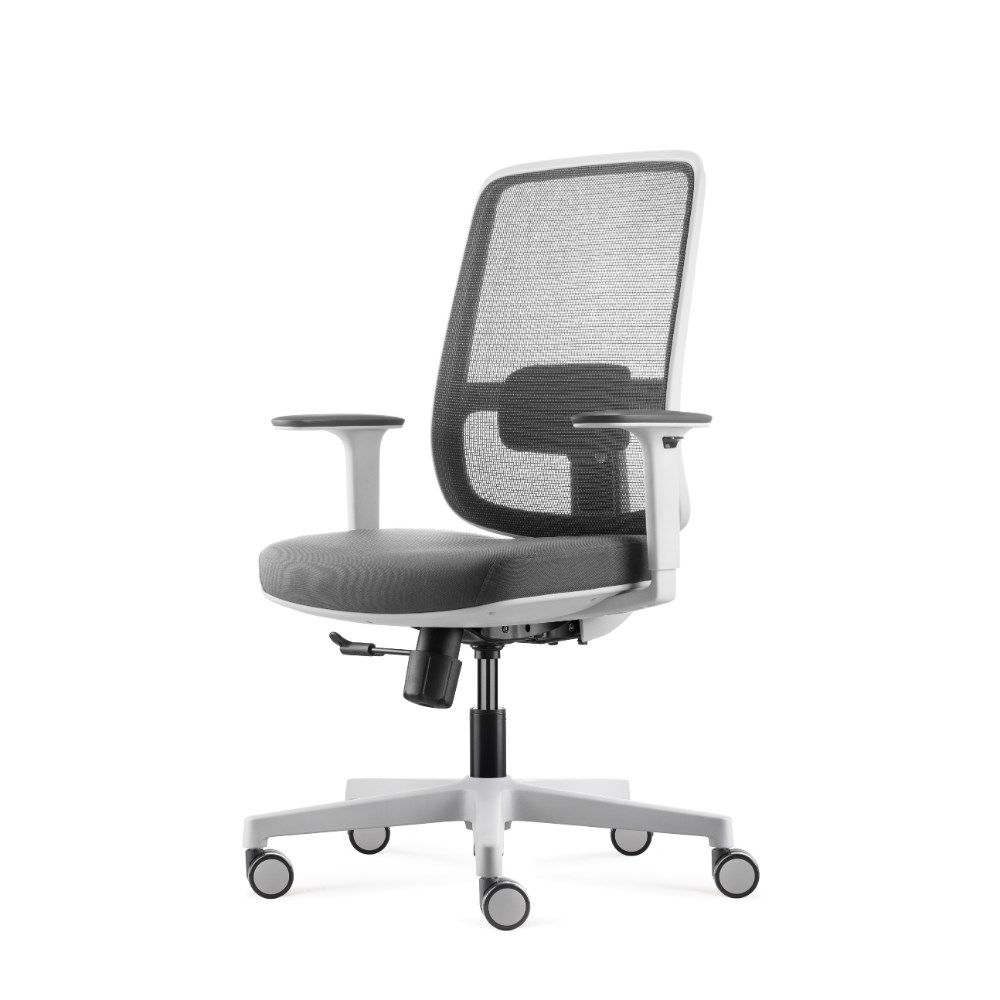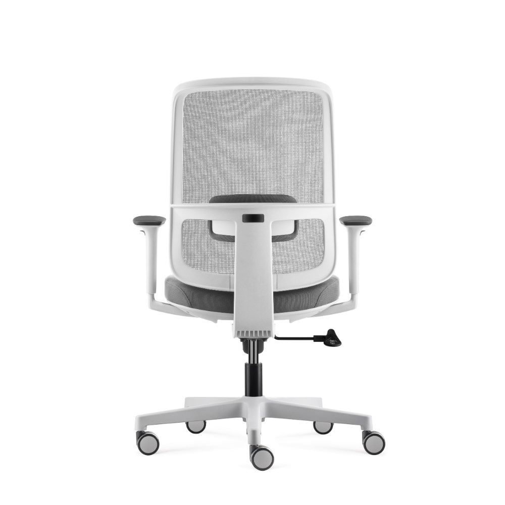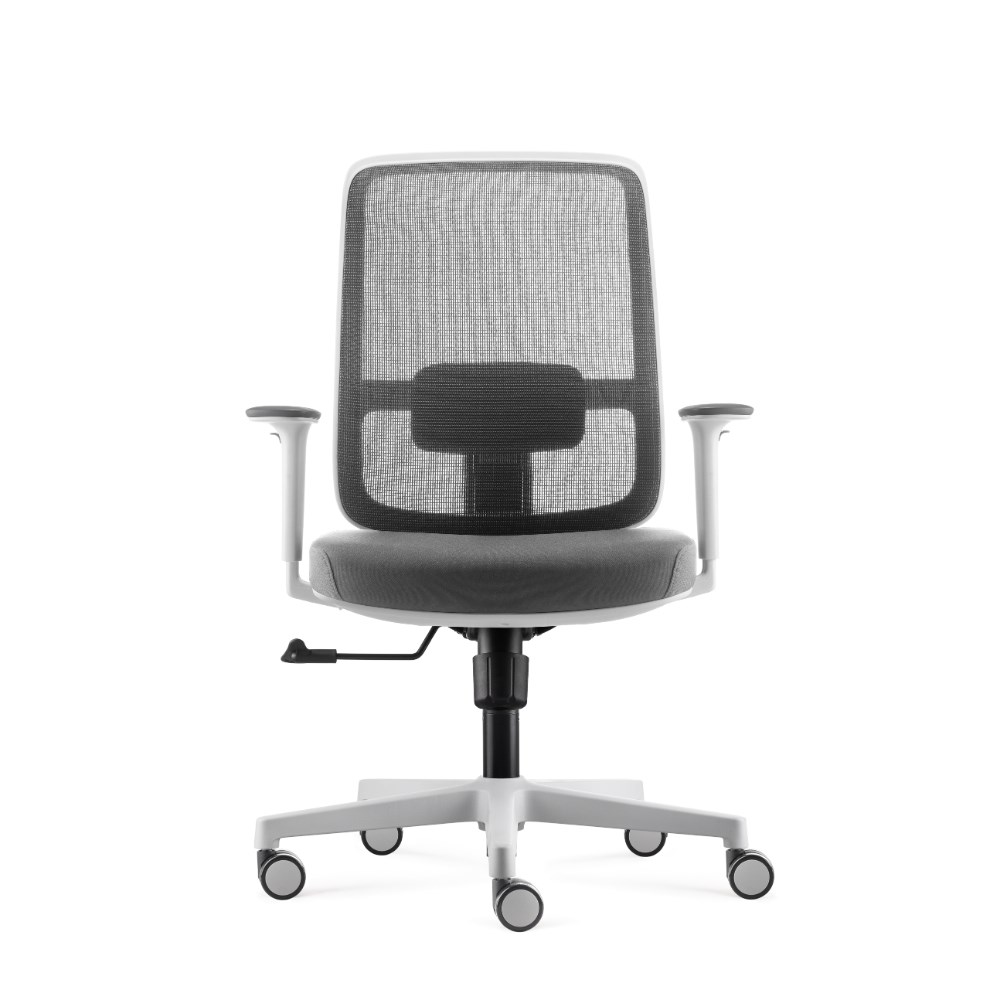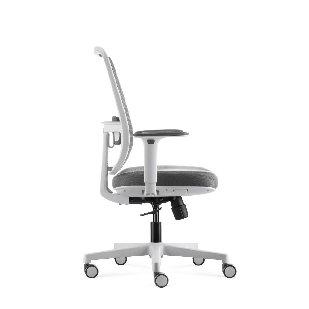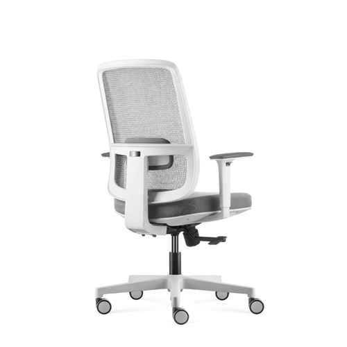 Lotto medium back operator chair. Medium back. White with grey backed mesh and grey fabric seat. White PP and fiberglass mix frame. Dimensions: 685W x 580D x 950mmH. Synchro mechanism with gas lift, back rest and seat pan tilt. Seat slide and lumbar support. Includes removable adjustable arms. Head rest available sold separately, please see codes 3091553. White grey 5 Star base on castors. 135kg weight rating. GreenGuard Gold approved. 5 Year Manufacturer's Warranty. Delivery, installation and assembly charges may apply to furniture. Please enquire to confirm.