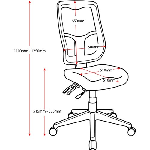 Fully ergonomic 4 lever heavy duty mechanism with seat slide. Upholstered seat. Heavy duty five star spider base with 50mm hard floor castors. Luxurious heavy duty moulded foam seat. Height adjustable ratchet back. AFRDI load rated to 160kg. Overall size of 600mm W x 520mm D x 1090 - 1230mm H. Seat size of 510mm W x 510mm D, seat height of 515 - 585mm H. 10 Year Manufacturer's Warranty. Delivery, installation and assembly charges may apply to furniture. Please enquire to confirm. Optional adjustable armrest available. Refer to product code 2834421.
