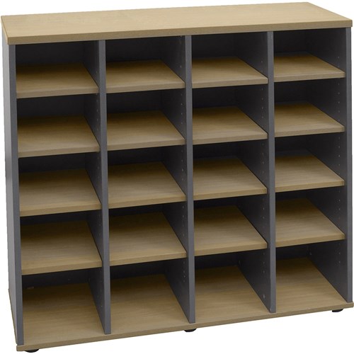 Rapidline Pigeon Hole Unit 20 Holes 1040W x 380D x 1040mmH Oak And Ironstone